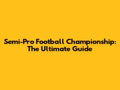 Semi-Pro Football Championship: The Ultimate Guide
