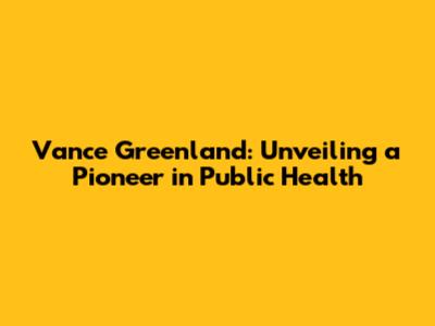 Vance Greenland: Unveiling A Pioneer In Public Health